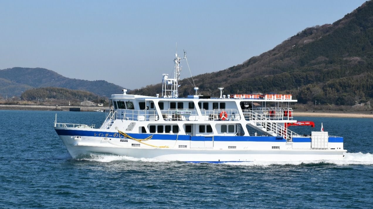 「レインボーのしま」は、野島~三田尻航路の予備船として「レインボーあかね」の不在時に野島~三田尻航路間を運航します。また、チャーター船としても活躍するほか、他の離島航路に傭船として貸し出します。